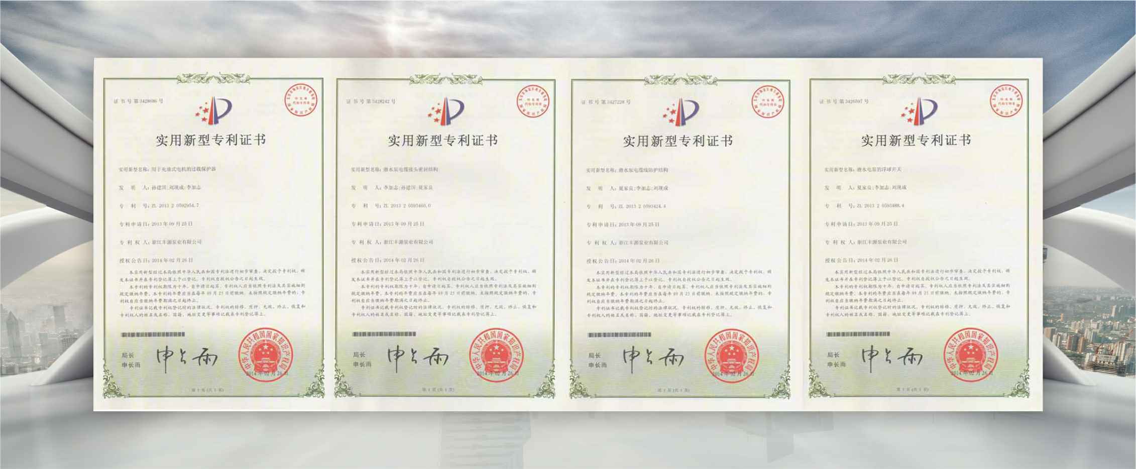 公司是全国农机标委会排灌设备和系统分会委员、是《小型潜水电泵》、《污水污物潜水电泵能效限定值及能效等级》、《井用潜水电泵能效限定值及能效等级》等多项国家标准,以及《大中型潜水电泵》、《水泵综合性能试验台校准规范》等行业标准的主要起草单位之一;公司通过IS09001:2015质量管理体系认证,多个系列产品取得CE、SASO等证书。